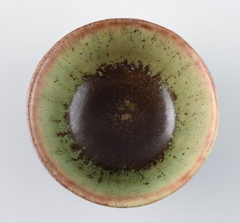 Carl Harry Stalhane, Rörstrand miniature stoneware bowl. Beautiful glaze. In perfect condition, 1st. factory quality. Measures 4.5 x 2.5 cm.