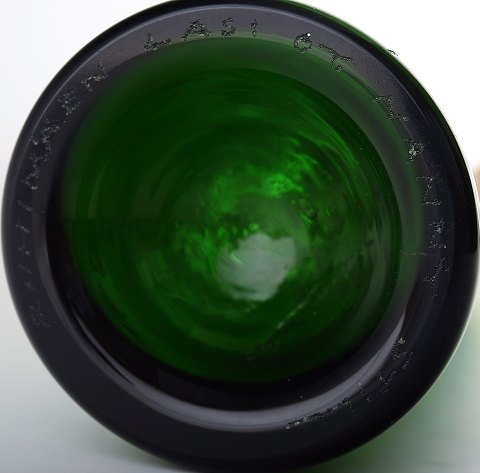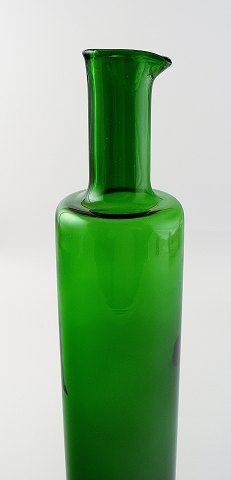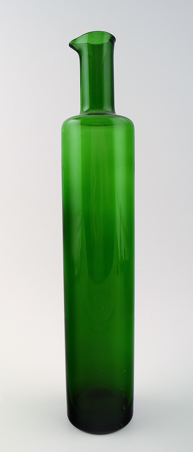 Nanny Still for Riihimäen Lasi, Finnish glass art decoration bottle, vase / pitcher. In perfect condition. Beautiful dark green color. 1960 / 70s. Measures 33 cm. Marked