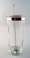 Ole Hagen, f. 1913, d. 1984 Cocktailkande af klart glas med montering og røreske af sterlingsølv. Udført og stemplet hos A. Michelsen. Røreske: vægt 44 gr. L. 29,5. Kande: H. 23,5. I perfekt stand.