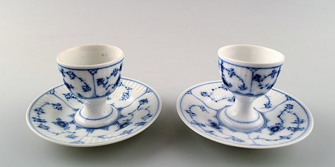 2 Blue Fluted Plain egg cups on foot from Royal Copenhagen. Number 1/117. 1st. factory quality. In perfect condition. Measures 11 x 7 cm.