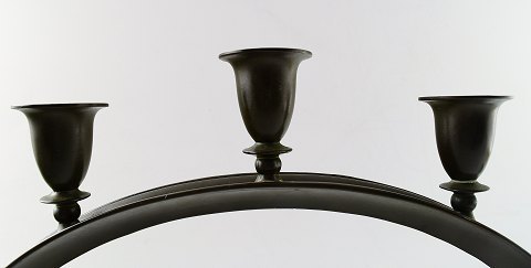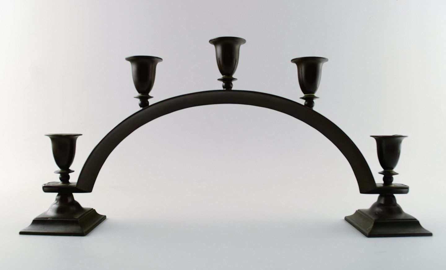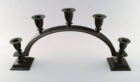 Stor fem-armet lysestage, Just andersen, disco metal. Modelnummer 1246 I flot stand. 22 cm. høj, 45 cm. lang. Stemplet.