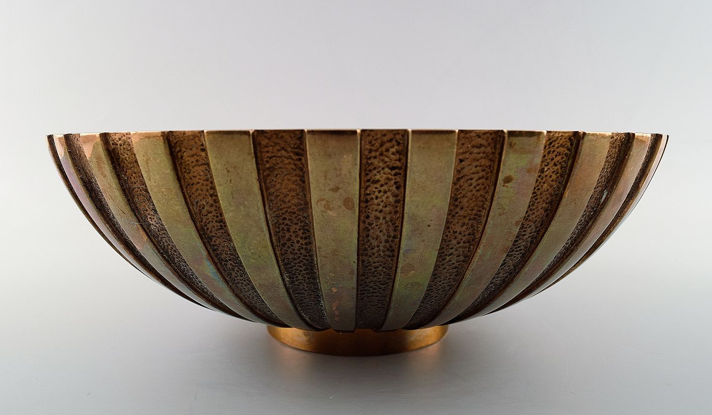 Stor Tinos art deco skål i bronze. Danmark, 1940´erne. Stemplet. I flot stand. 22,5 cm. x 9 cm.
