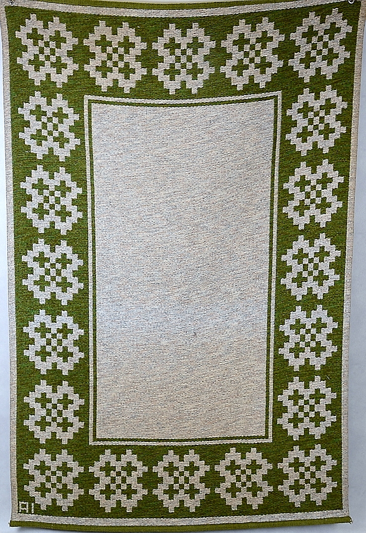 Rölakan, Swedish design 1960s. Carpet. Measures 197x127 cm. Monogram signed "AI" In good condition, light wear.