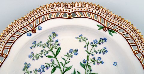 Royal Copenhagen Flora Danica, Round dish or Dinner plate with pierced border. Decoration number 20/3626. 1. factory quality. Latin name: Echinospernum deflexxum Lehm. Diameter 27 cm. Perfect condition.
