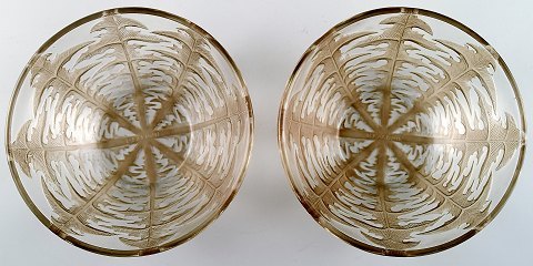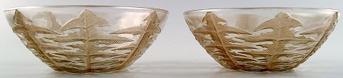 Par tidlige Art deco Lalique kunstglasskåle. Signeret: R. Lalique. 1920/30´erne. Størrelse: 5 cm. høje. 13 cm. i diameter. I perfekt stand.