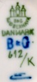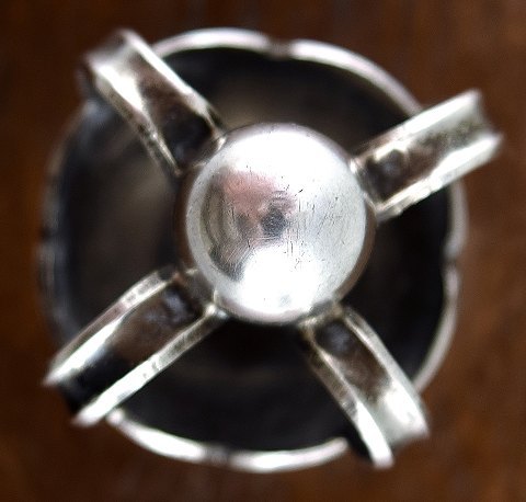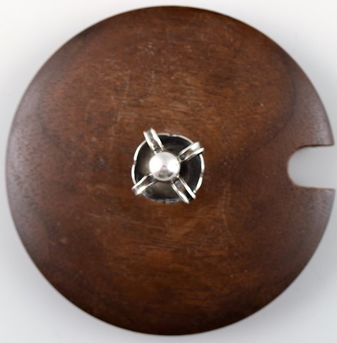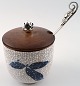 B&G, Bing & Grøndahl art deco marmeladekrukke i krakelé, tilhørende låg i teak med sølvknop, tilhørende sølvske. 1930/40´erne. Stemplet. I god stand. Måler 8 x 10 cm.