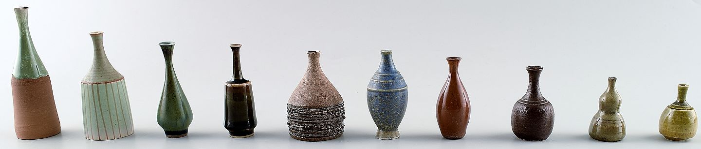 Samling Höganäs m. fl. miniature vaser, i alt 10 stk. Signeret, JA (John Andersson) m.fl. I perfekt stand. Højeste 9,5 cm.