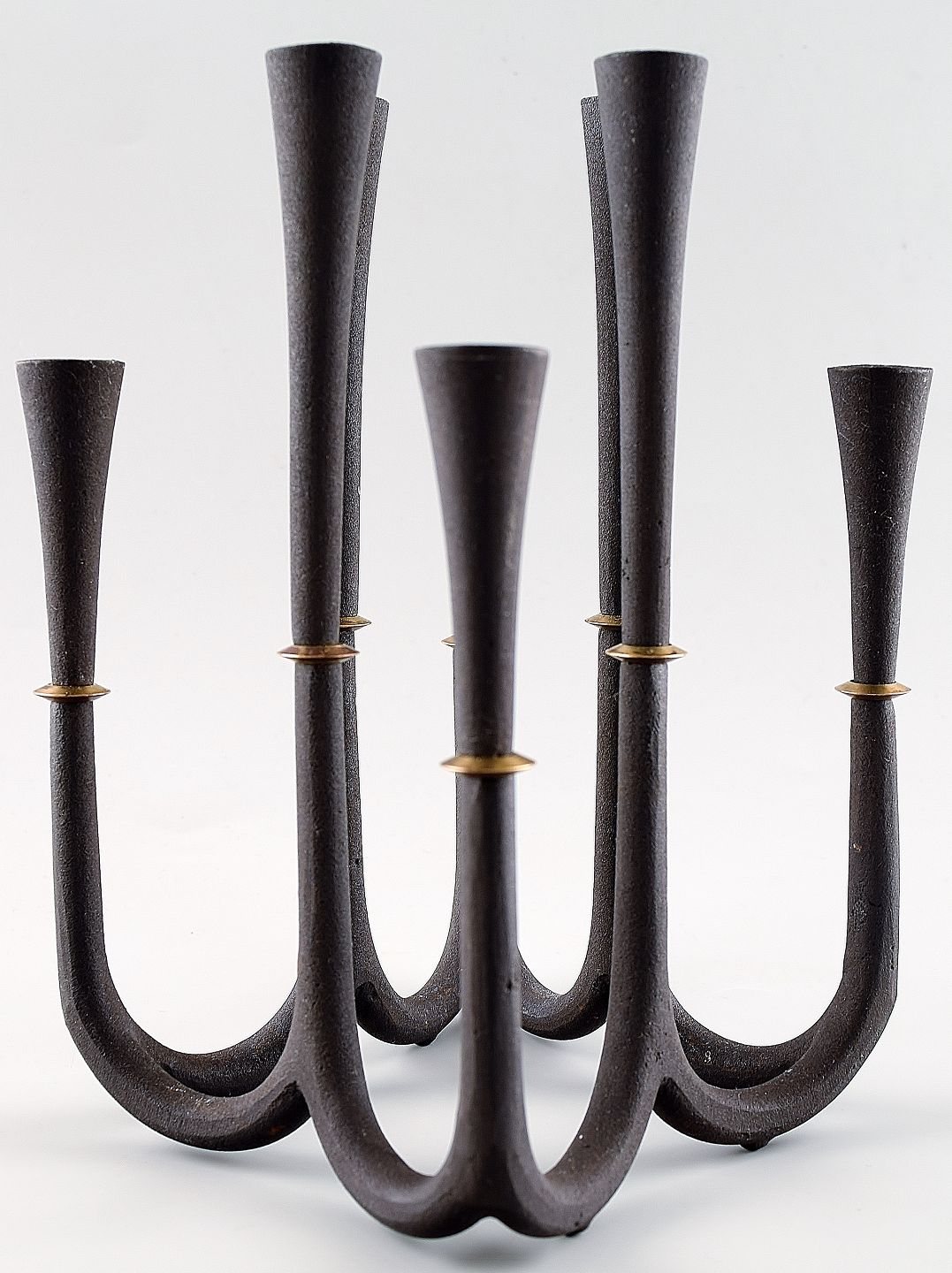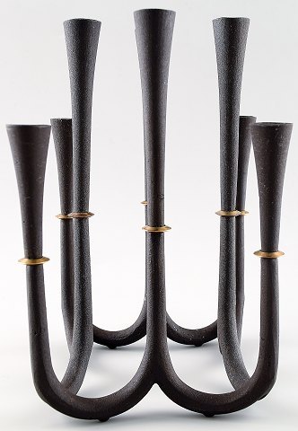 Rare Jens Quistgaard candlestick in cast iron for 8 lights. Danish design 1960s. Good condition. Measuring 18 x 16 cm. Marked.