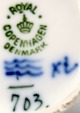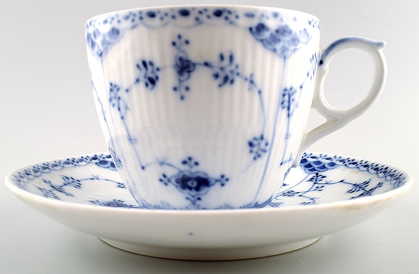 Royal Copenhagen Musselmalet Halvblonde kaffekop med tilhørende underkop. Nummer 703. God stand. 2. sortering