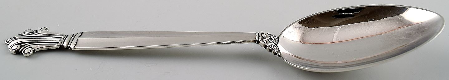Georg Jensen sølvbestik Dronning sølvtøj, Georg Jensen Dronningemønster Acanthus. Designet af Johan Rohde. 2 Dessertskeer Længde 17,5cm. I flot stand. Stemplet.