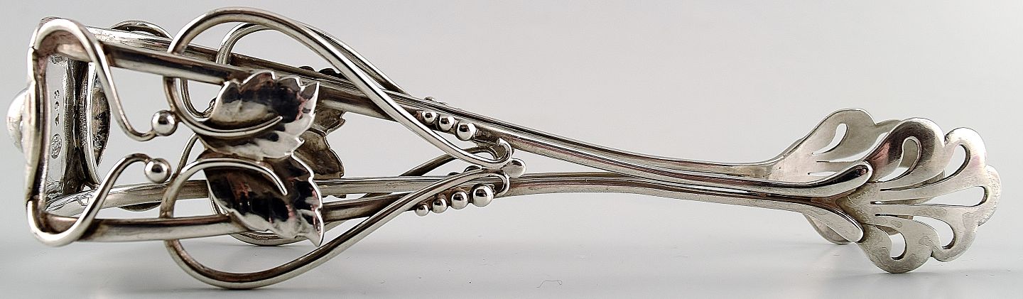 Sjælden Georg Jensen sukkertang, rigt ornamenteret. Design 103, tidlige stempler. L: 13,5 cm. Vægt: 38 g. Proveniens: Familien Bauder. Arven fra Carl Bauder 1882-1944, Danmark.