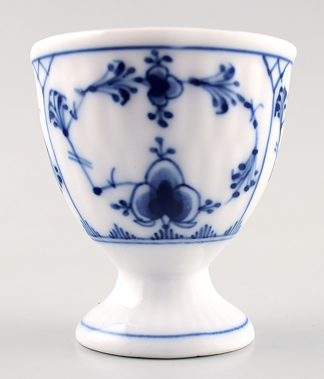 Rare Blue Fluted Plain egg cup from Royal Copenhagen. Early stamp. Number 1/115. 1st. factory quality. In perfect condition. Measures 6 x 5 cm.