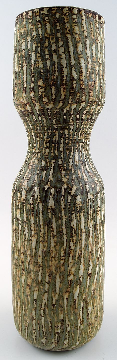 Gunnar Nylund, Rörstrand. Large vase in ceramic, glaze in shades of green. Measures: 30 cm. x 7.5 cm. 1. Quality, in perfect condition.