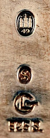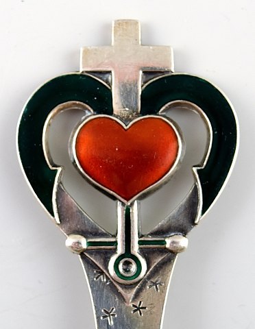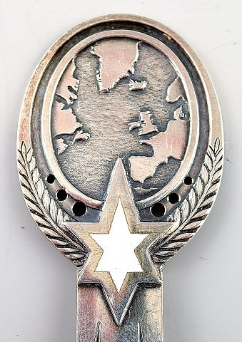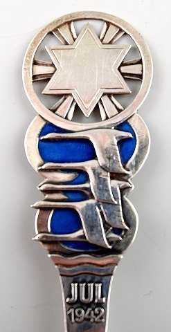 5 Christmas Spoons from 1941,42,45,47,49. Produced by Grann and Laglye, Copenhagen. In very good condition. Measures: 18 cm.