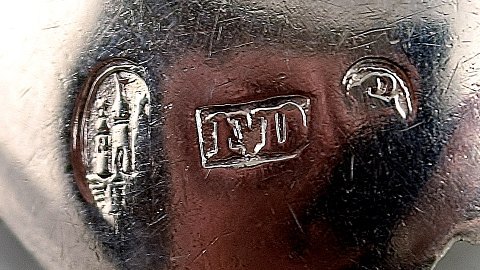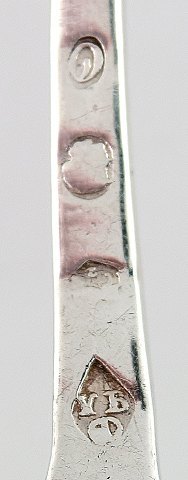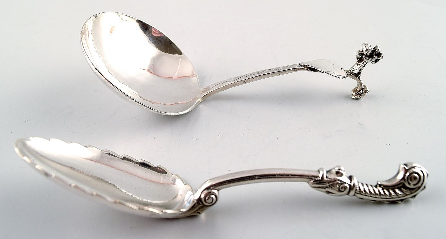 2 antikke tretårnet sølvskeer. Stemplet, ukendt mester, 1800-tallet. I god stand. Måler 10,5 cm.