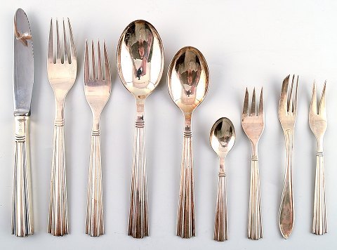 Complete Art Deco Dagmar silver plated cutlery for 6 p. Dinner Knife 20 cm. In good condition, polished. Denmark app. 1940 A total of 59 parts.