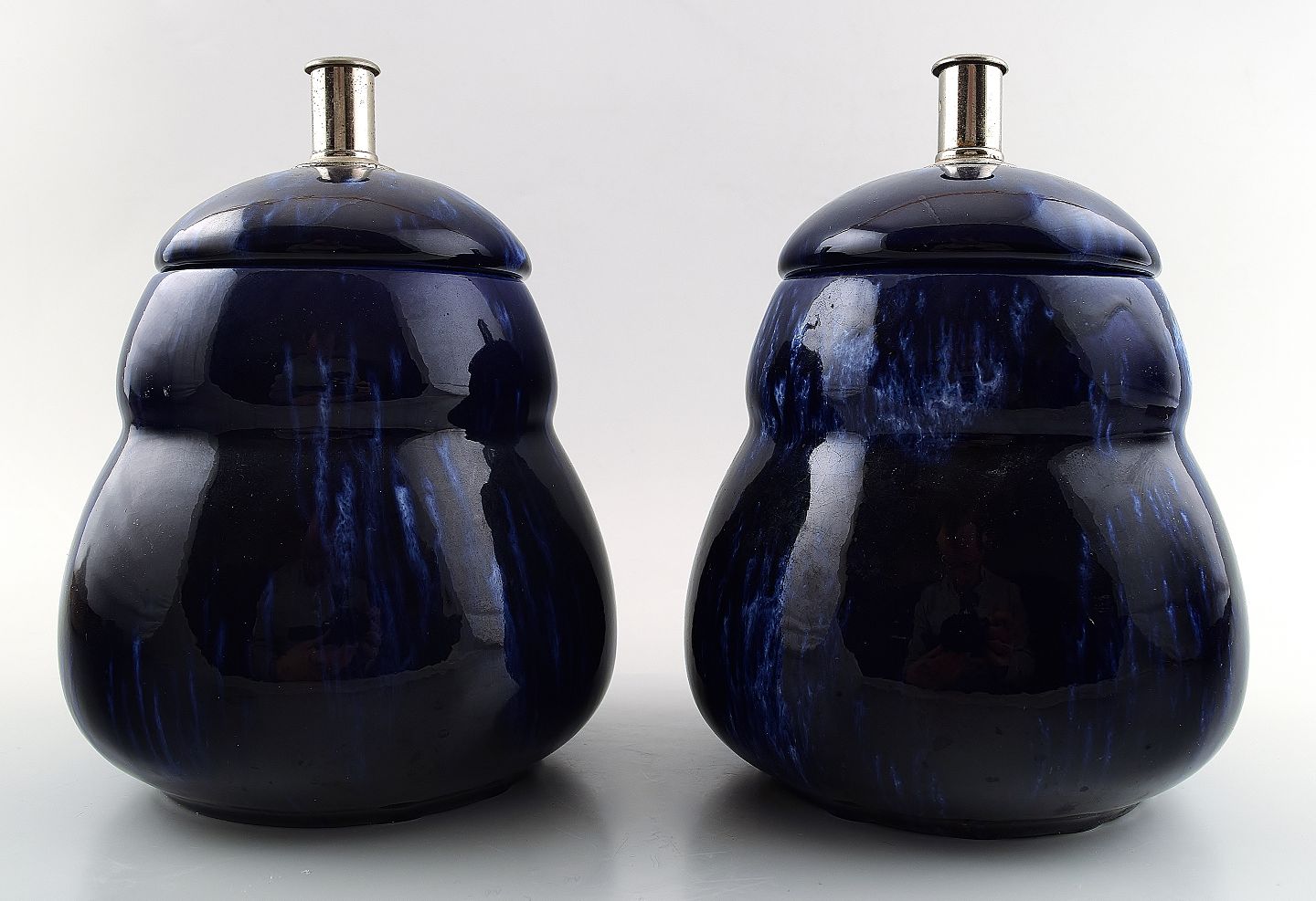 Et par Rörstrand lågvaser i mørkeblå fajance. 1930/40´erne. Måler 18.5 og 13 cm. I perfekt stand. Stemplet.