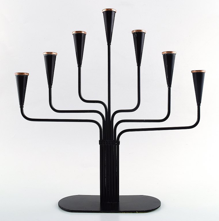 Et par Ystad metall, Gunnar Ander syv-armede svensk design lysestager i metal med messing top. I stilrent skandinavisk design. I perfekt stand. 1970´erne. Måler 27 x 29 cm. Ustemplet.