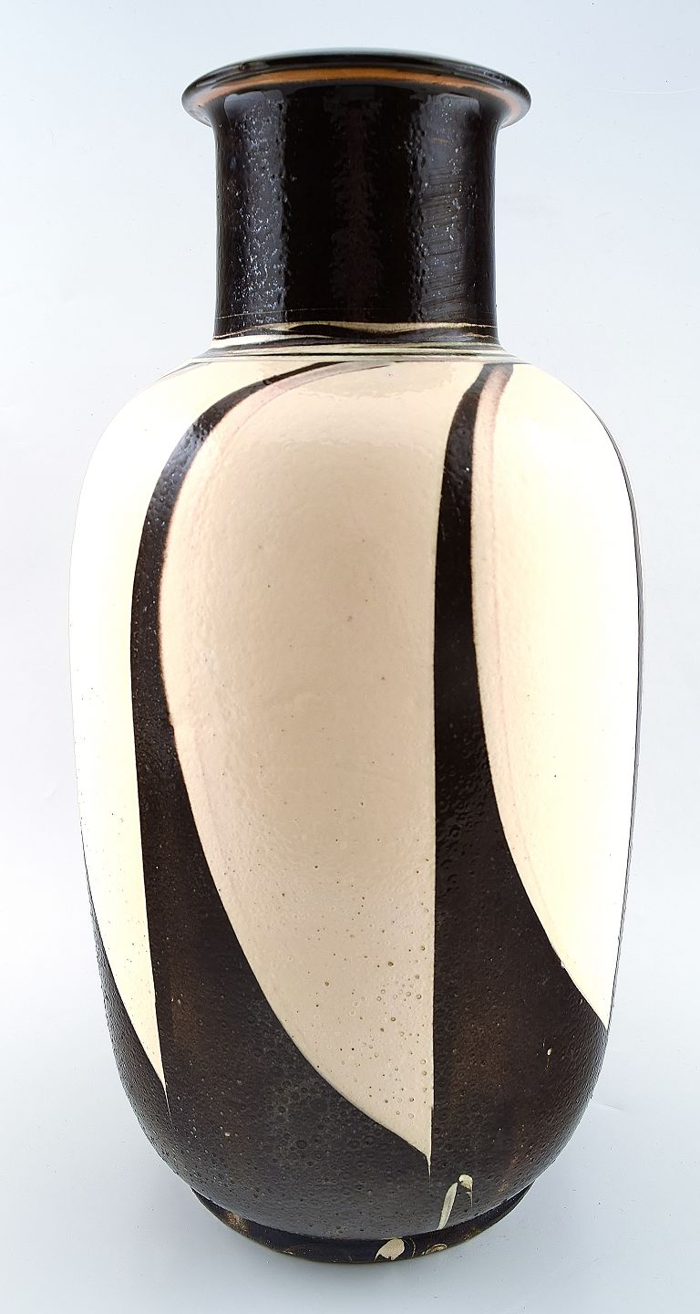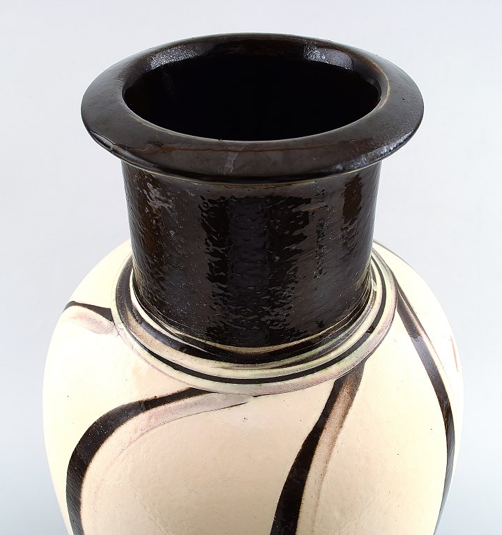 Kähler, HAK, glaseret stentøjsgulvvase. 1940´erne. Flot vase i moderne design. Stemplet. Måler : 39 cm. x 16 cm. I god stand.