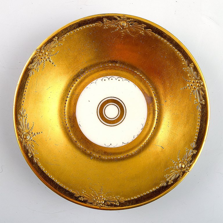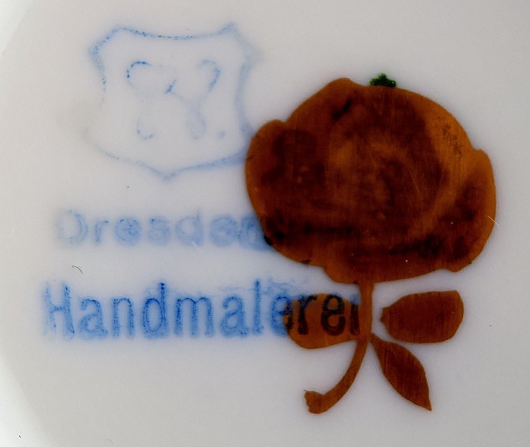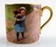 Dresden demitasse cup / doll cup including saucer, hand-painted porcelain, gold-plated. Little girl with cat on the road. Measurements : Cup 9 cm. x 5 cm. Saucer 9 cm. Marked. Early 20 c. Germany.