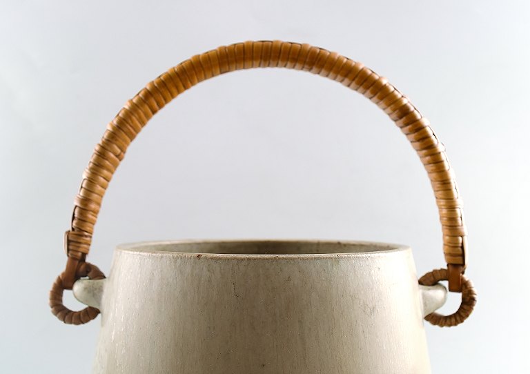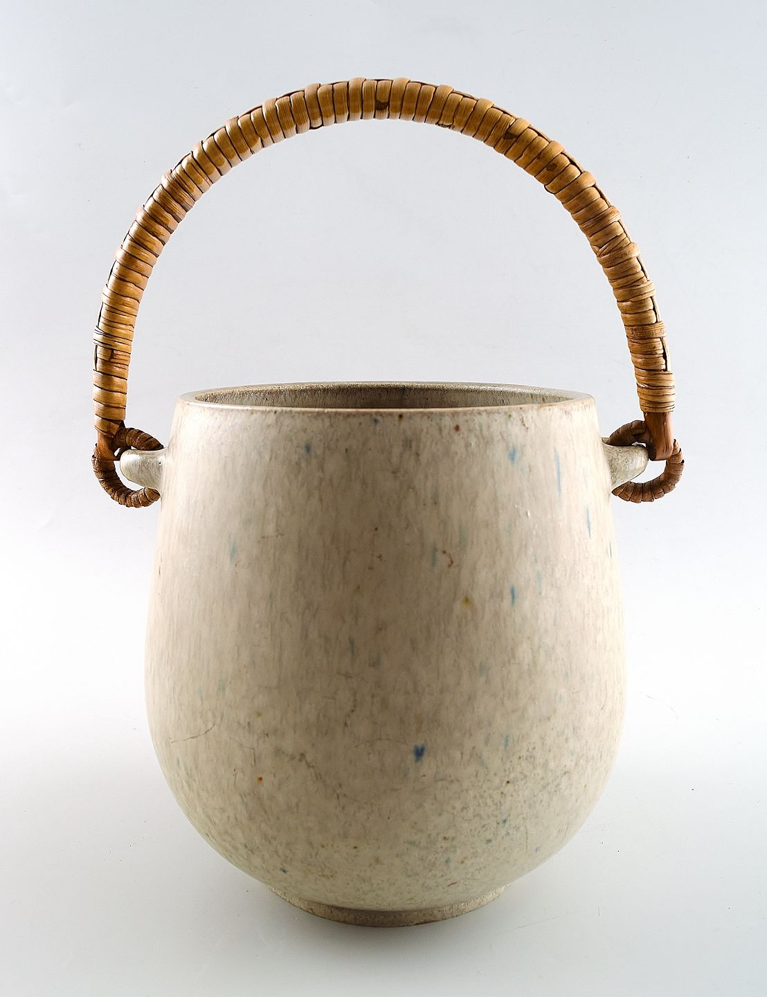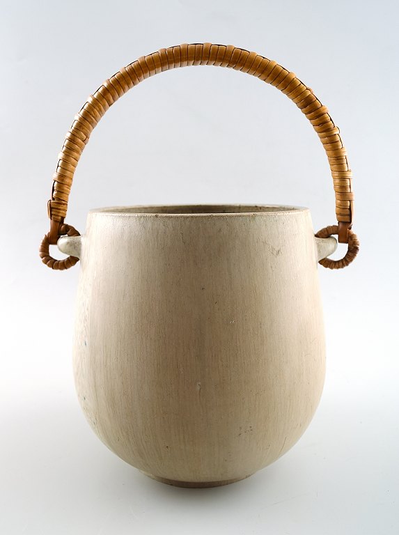 Arne Bang art pottery large ice bucket. Stamped AB. Denmark, 40s. Glaze in sand-colored shades. In perfect condition. Measures: 27 x 17 cm.
