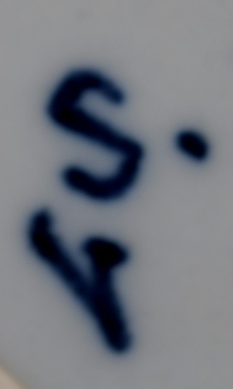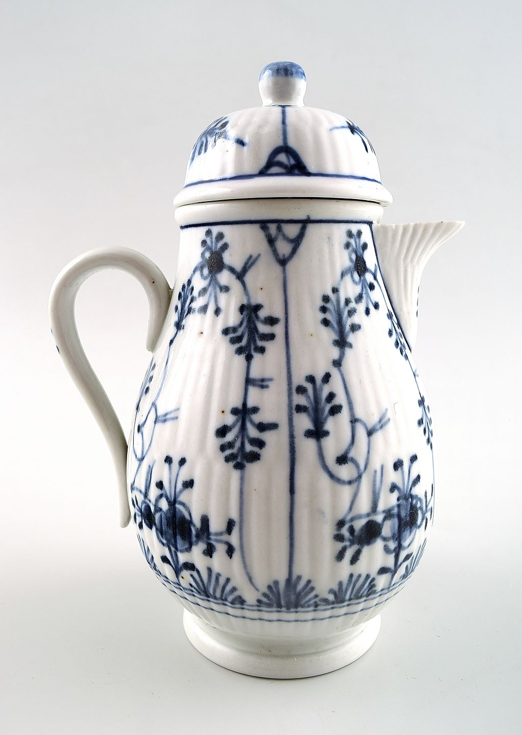 Antik tysk musselmalet mokka-kande. Stemplet, 18-tallet. Måler 15 cm. I perfekt stand.