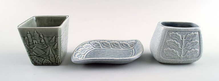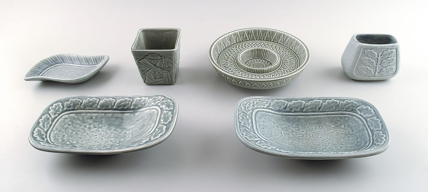 Rörstrand 6 vases and dishes, 60s. Measures 17 cm. x 3.5 cm. (Largest) Beautiful glaze. Marked. In perfect condition.