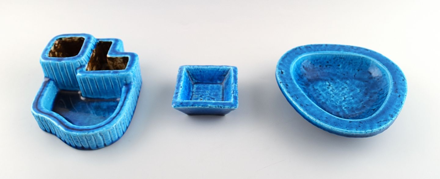 Rörstrand Gunnar Nylund 3 Chamotte vases and containers. Measures 15.5 cm. x 5 cm. (Largest) Beautiful turquoise glaze. Marked. In perfect condition.