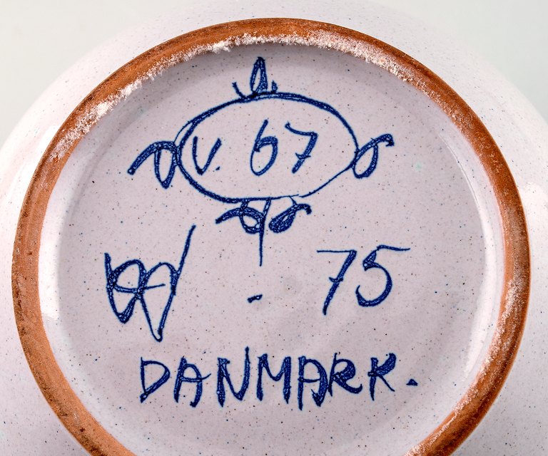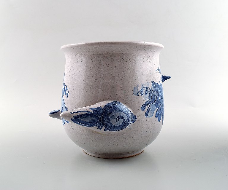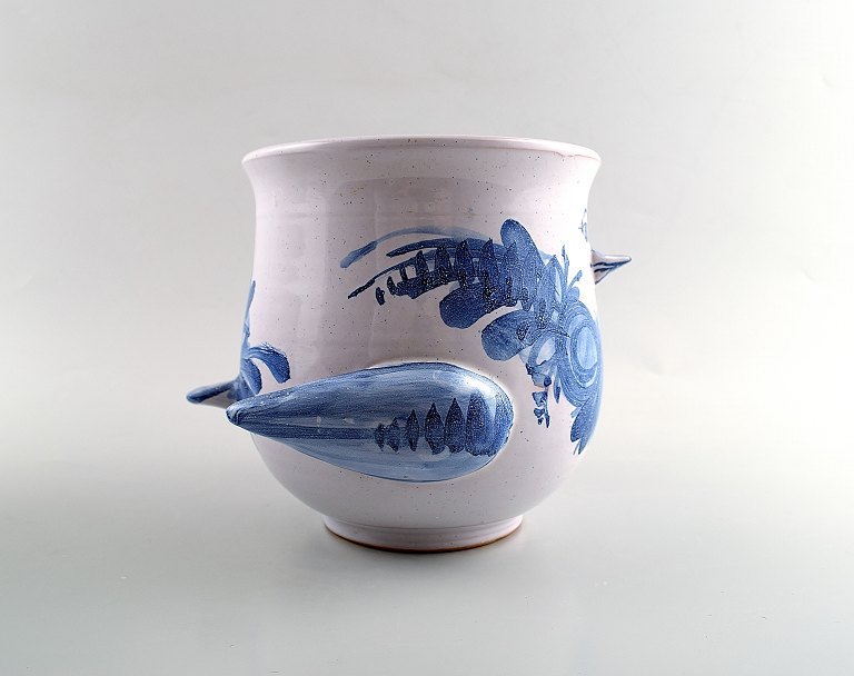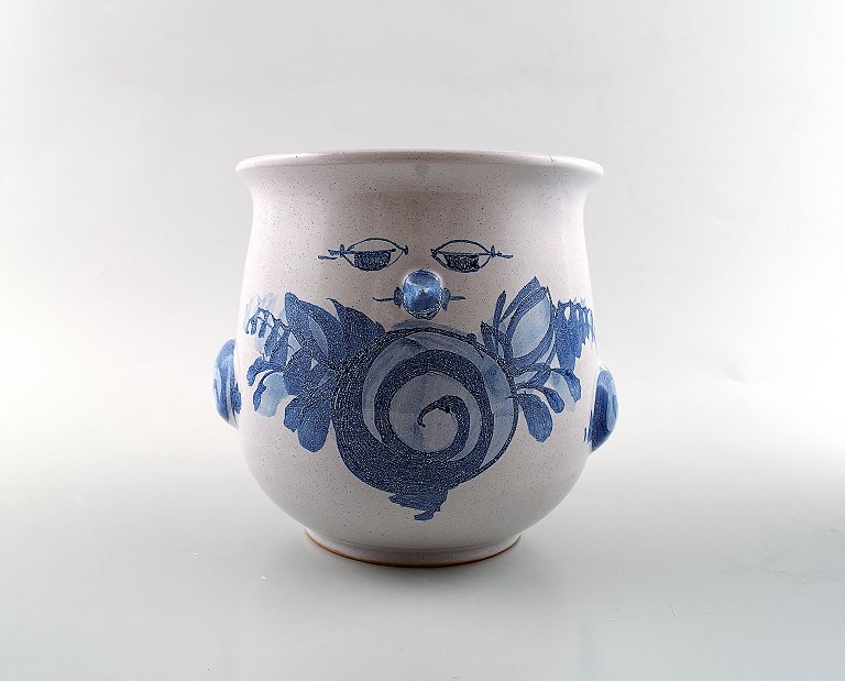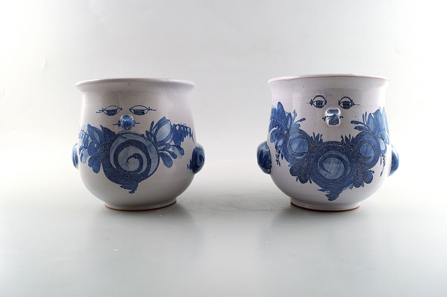A pair of Wiinblad unique ceramics flowerpots, blue glaze. Measures: 16.5 cm. x 15 cm. Model number V.67. Dated 1975 and 1973. In perfect condition.