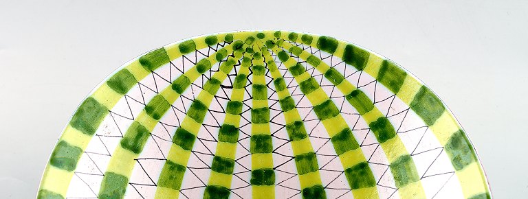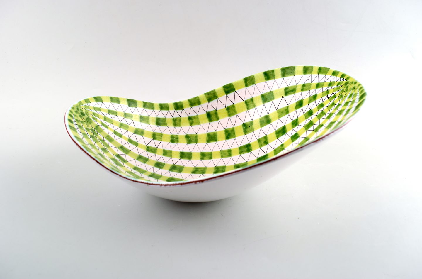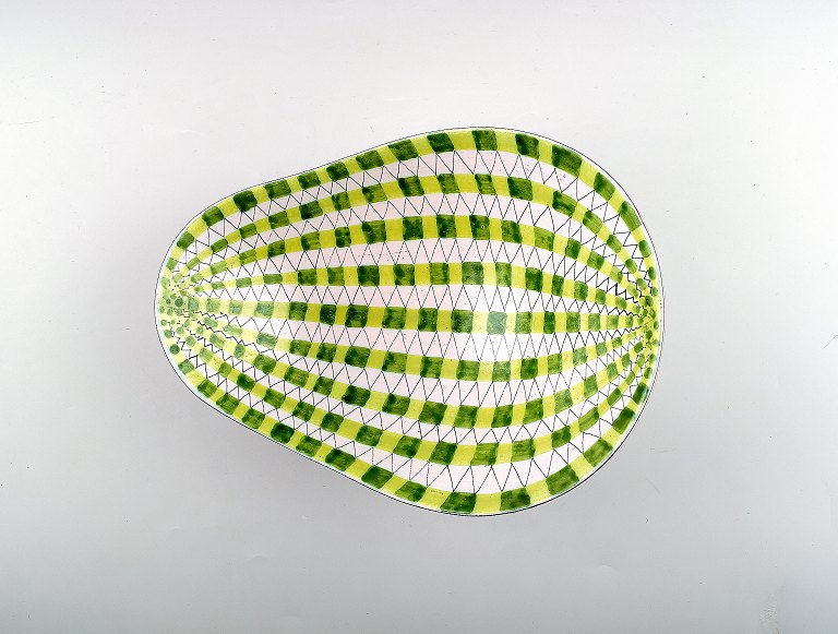 Stor skål, Stig Lindberg, Gustavsberg studio. Fajance. 1940´erne. Smuk glasur i gule og grønne nuancer. Måler : 27 x 19 x 10 cm. Signeret med "studiohand". I flot stand.