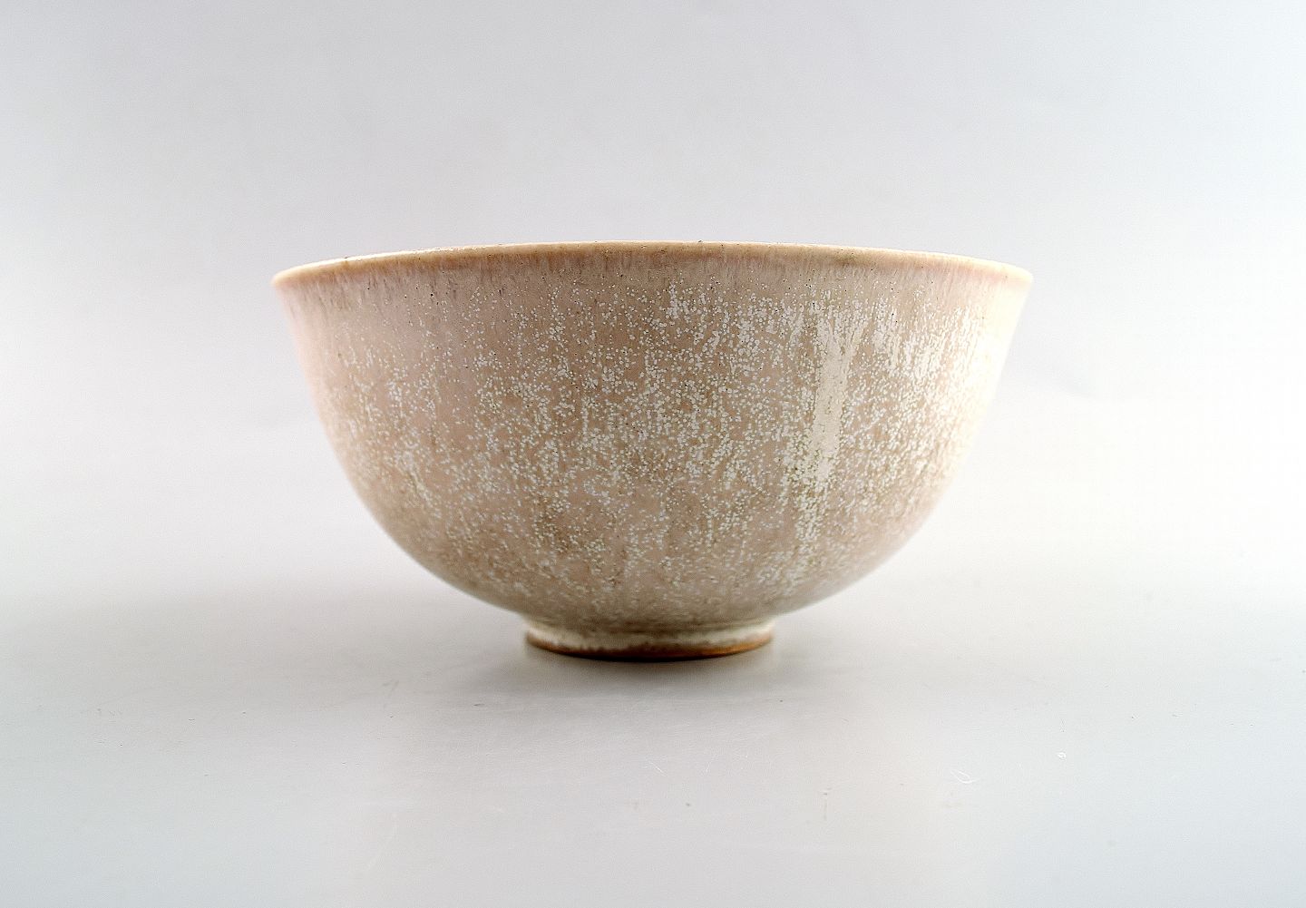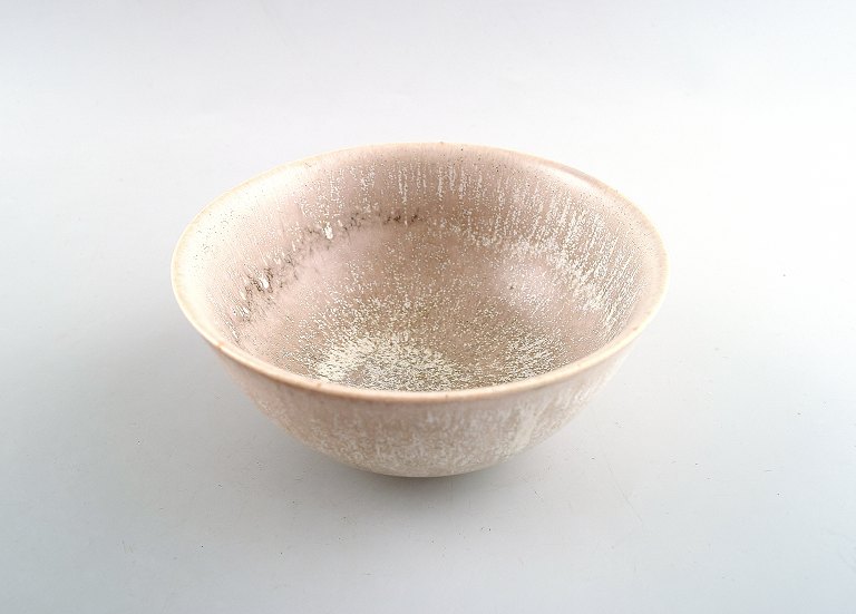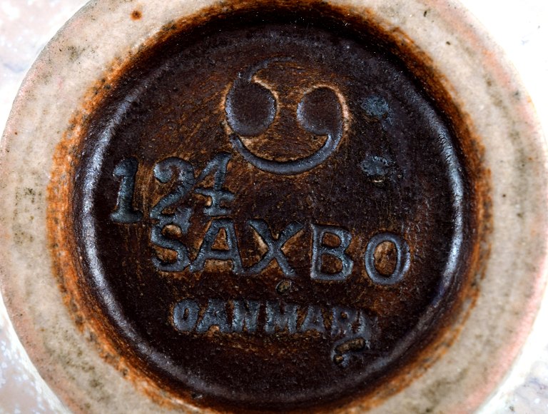 Saxbo bowl in stoneware decorated with beautiful eggshell glaze. Hallmarked : Saxbo, no. 124. Denmark mid 20 c. Measures 11.5 cm. x 6 cm. In perfect condition.