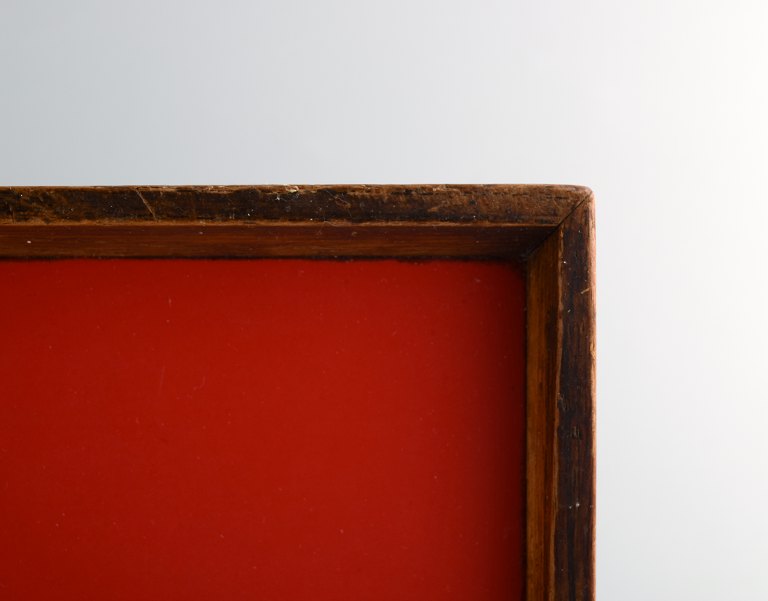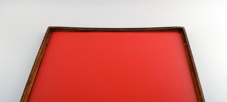 Finn Juhl: Vendbar bakke af teak med rød og sort melamin. Synlige hjørnetapninger. Udført hos Torben Ørskov. 1960'erne. Længde 51 cm. Bredde. 38 cm. I flot stand.