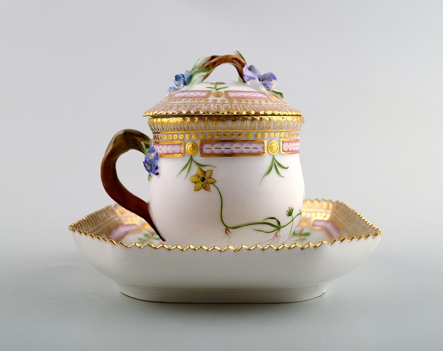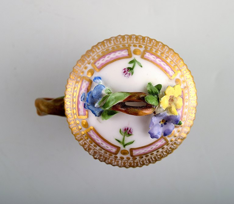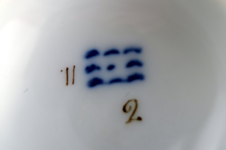 Measures 8 x 9 cm. Saucer: 10 cm. in diameter.