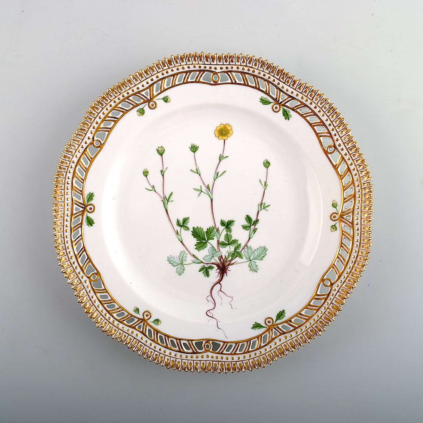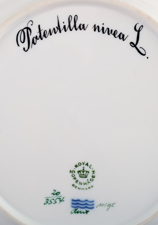 Royal Copenhagen flora danica gennembrudt tallerken #20/3554. 23 cm. i diameter. Latinsk betegnelse : Potentilla nivea L. 1. sortering, i perfekt stand.
