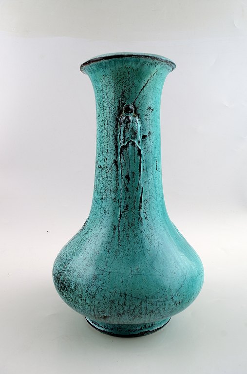 Svend Hammershøi for Kähler, HAK, glazed stoneware art pottery vase, 1930s. Designed by Svend Hammershøi. Turquoise Green double glaze. Measures 28 x 18 cm. Marked. In perfect condition.