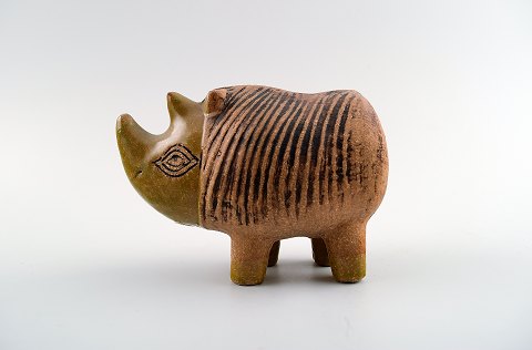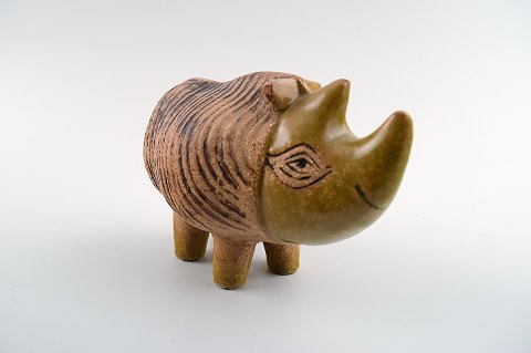 Rhino in Stoneware, Lisa Larson, Gustavsberg. Sweden 70s. Measures 10 cm. x 7.5 cm. Unstamped. In perfect condition.