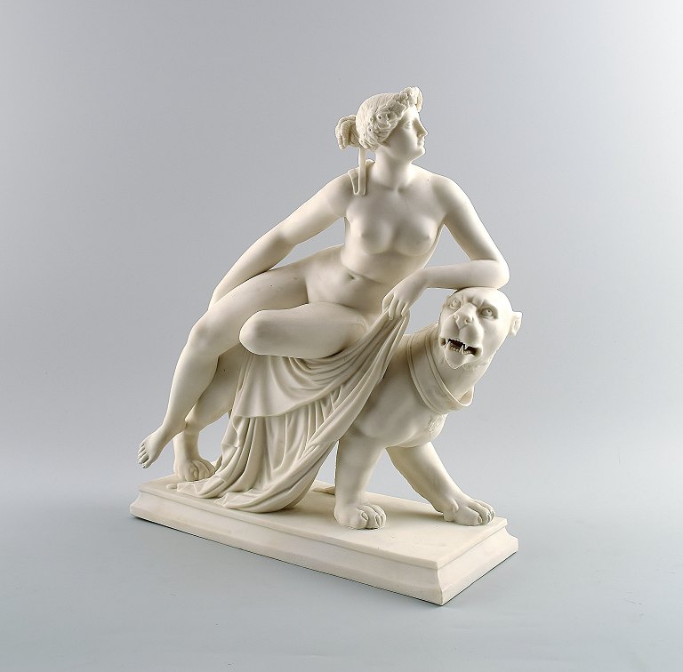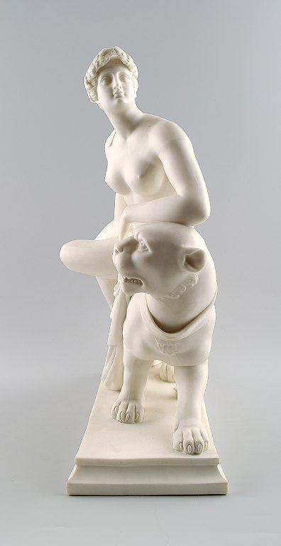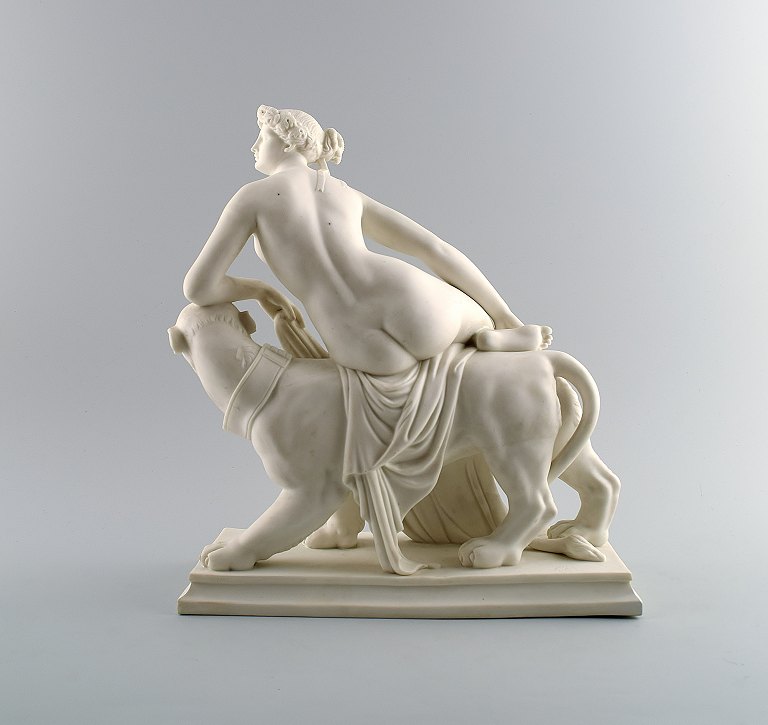 Classical sculpture, Ariadne on panter, biscuit on base, Gustavsberg, late 19 c. Measures 31 cm. x 28 cm. In perfect condition. Marked.