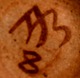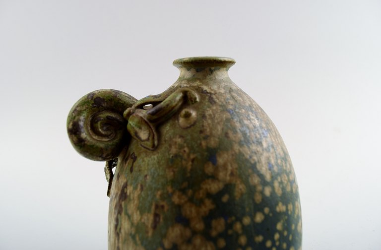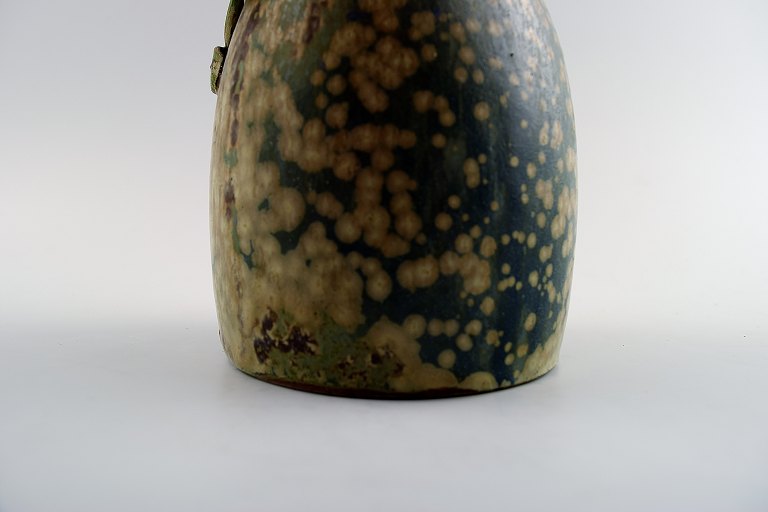 Arne Bang. Pottery vase with foliage. Stamped AB. Number 8. Denmark 40s. Glaze in green, blue and sand-colored shades. In perfect condition. Measures: 13 cm. x 9 cm.