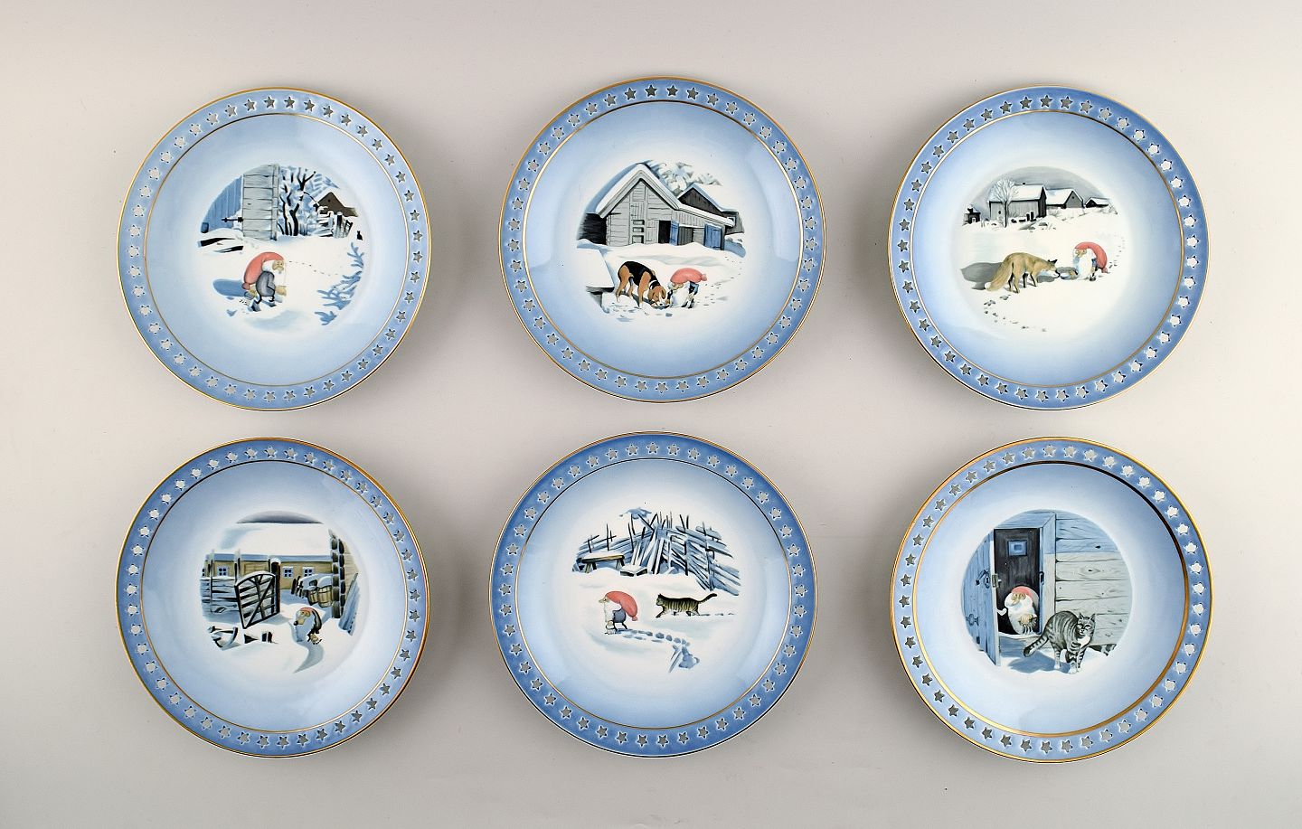 B&G (Bing & Grøndahl) 6 kagetallerkener/desserttallerkener, Juleservice, Harald Wiberg. 1. sortering, i perfekt stand. Måler 17,5 cm. Stemplet.