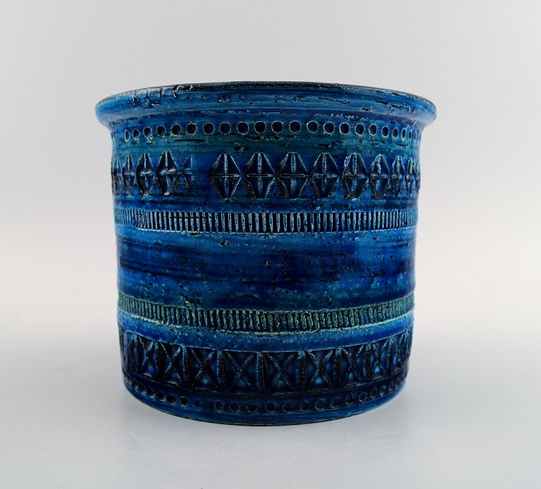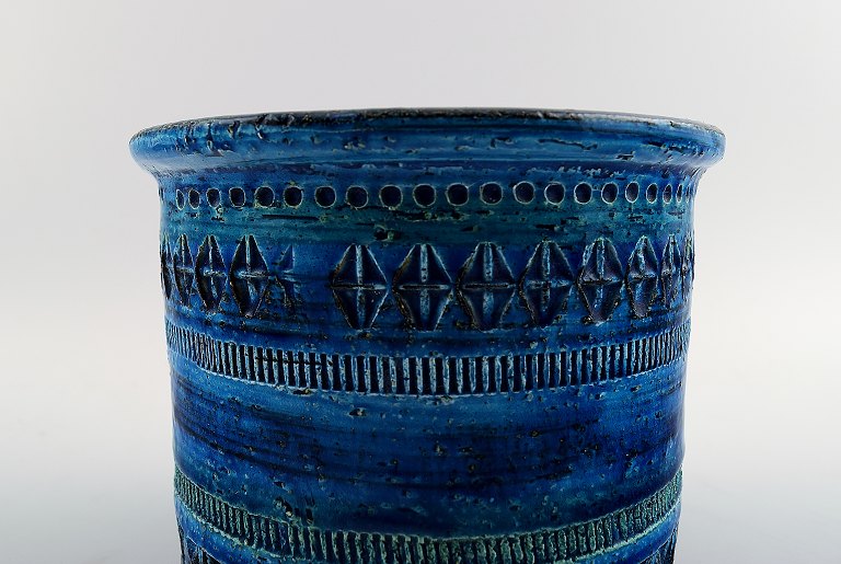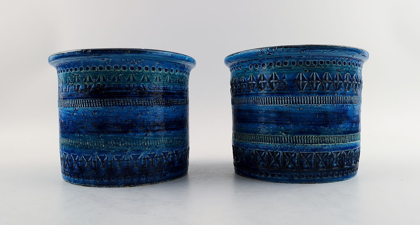Bitossi, Rimini-blå, et par vaser/urtepotteskjulere i keramik, designet af Aldo Londi. Stemplet. 1960´erne. Måler 15 cm. x 12 cm. I perfekt stand.