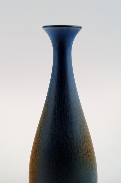 Berndt Friberg Studio pottery vase. Modern Swedish design. Unique, handmade. Amazing glaze in blue-violet and brown shades! Perfect. 1st. factory quality. Size: 16 cm. high.