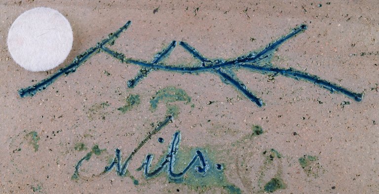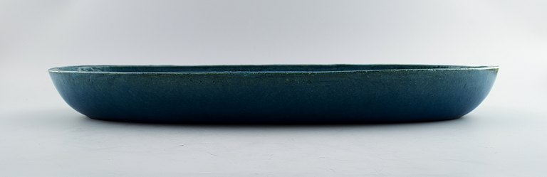 Kähler, HAK, kolossalt glaseret stentøjsfad/bakke, 1960'erne. Designet af Nils Kähler. Turkis glasur. Måler 49 cm. 6 cm. højt. Stemplet. I perfekt stand.