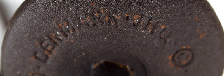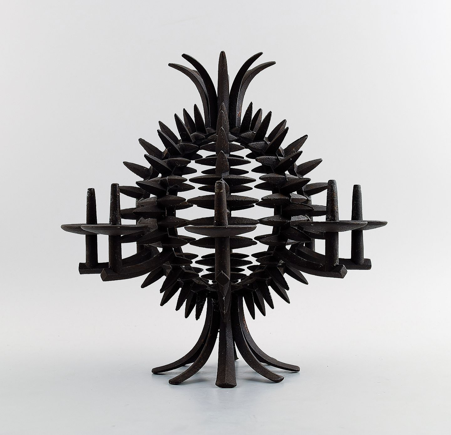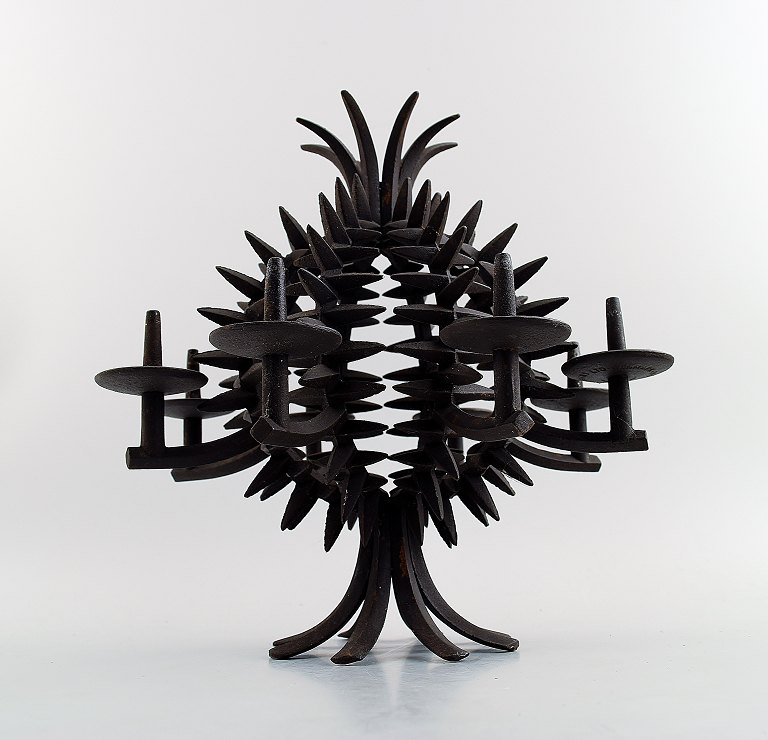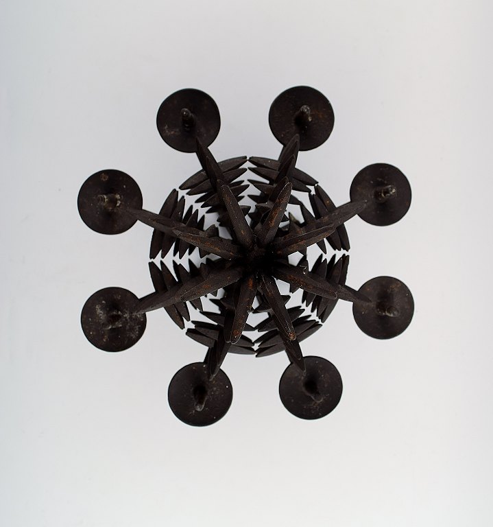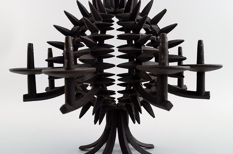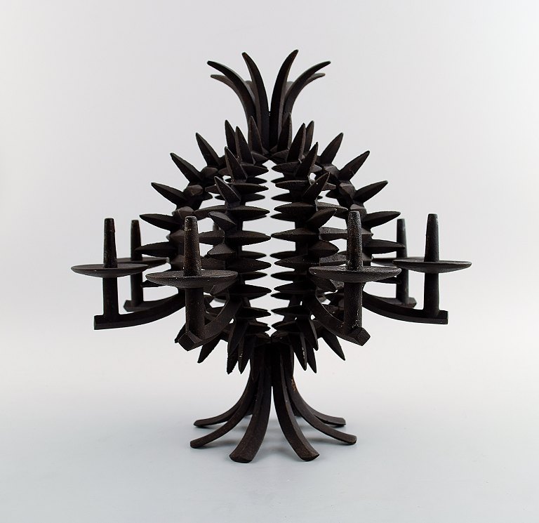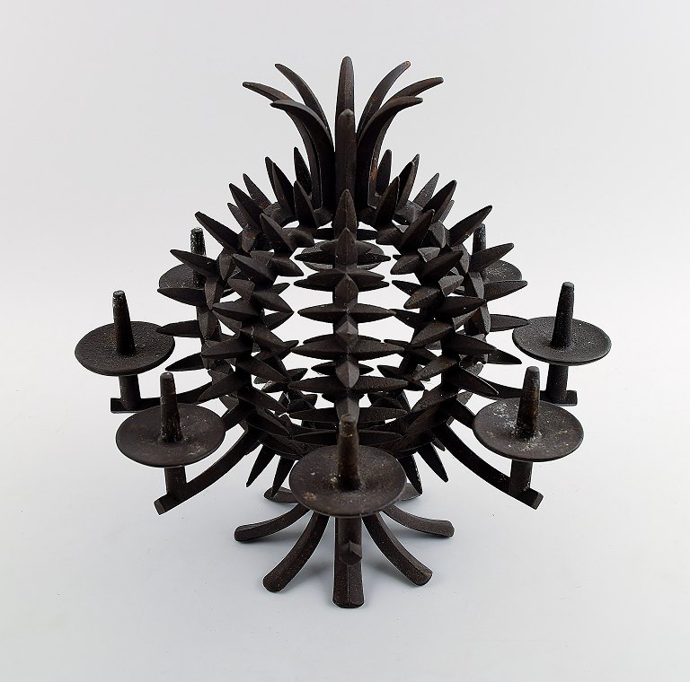 Jens H. Quistgaard: f. København 1919, d. 2008. Rund, ananasformet bordstage af støbejern med otte lysholdere/spyd. Stemplet JHQ, Dansk Designs Denmark. Højde 25 cm. I god stand, alm. brugspræg.