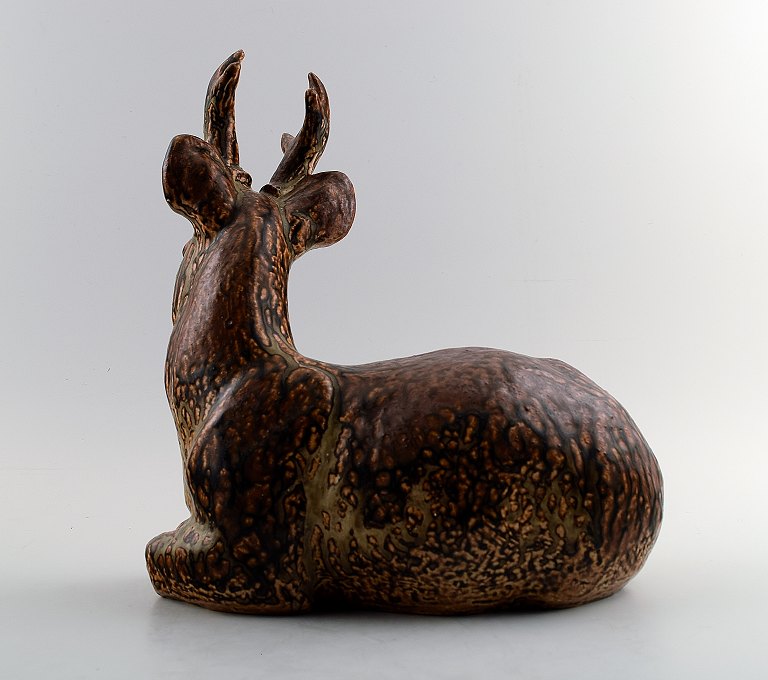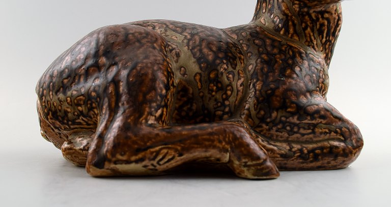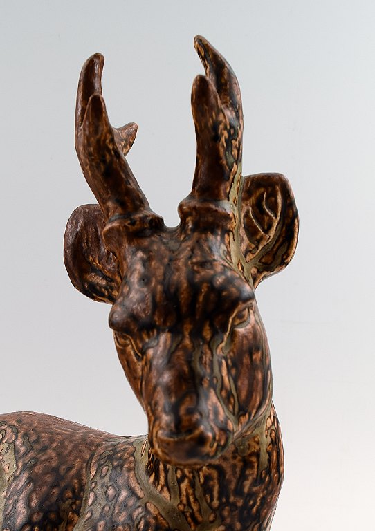 Royal Copenhagen figurine no. 20507, Royal Copenhagen stoneware figurine. Red deer. A large and beautiful figure. Length 24 cm. Height 28 cm. Artist: Knud Kyhn. 1. Quality, in perfect condition.