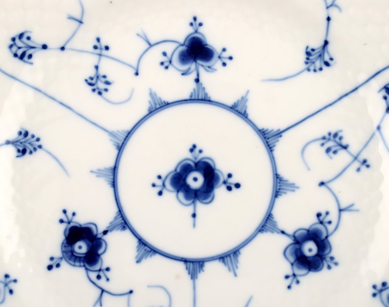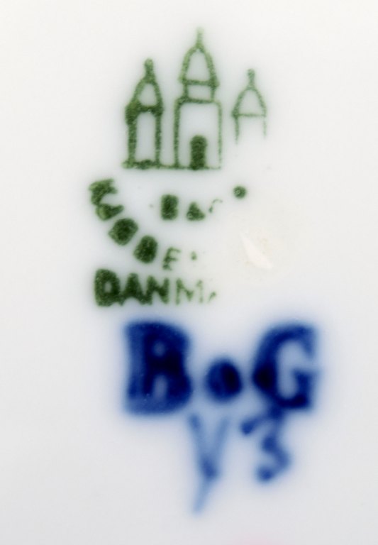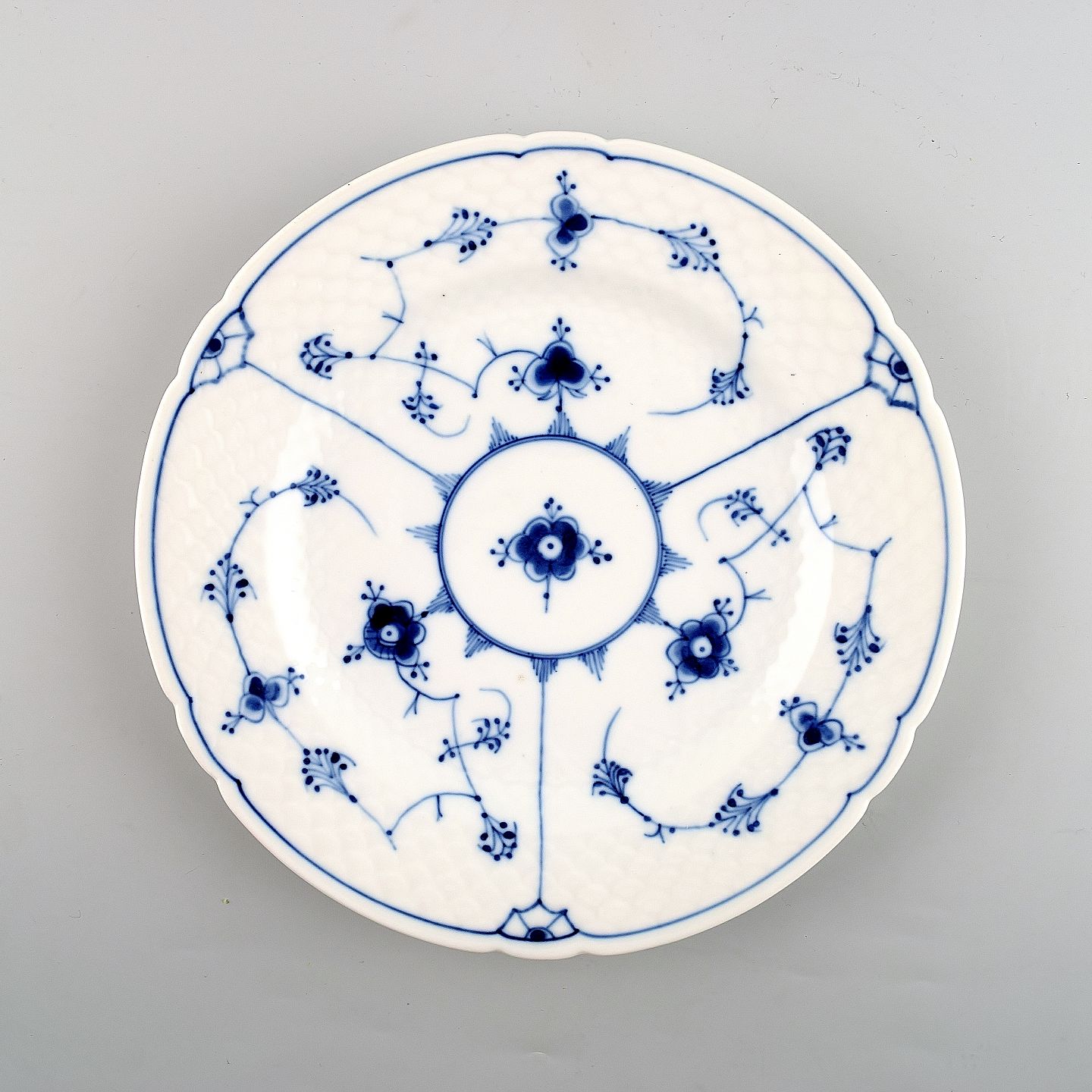 B & G, Bing & Grondahl Blue Fluted 4 dinner plates in porcelain. Measures 24 cm. Denmark 20/30s. 2 in 1st. factory, 2 in second factory, in perfect condition.