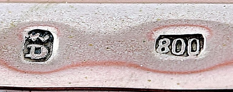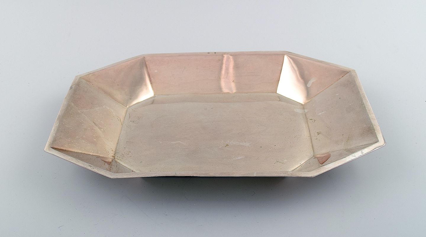 Large American dish / tray in silver. Measures: 30 x 20 x 4 cm. 800 S. Weight 409 grams. Stamped D 800 In good condition.