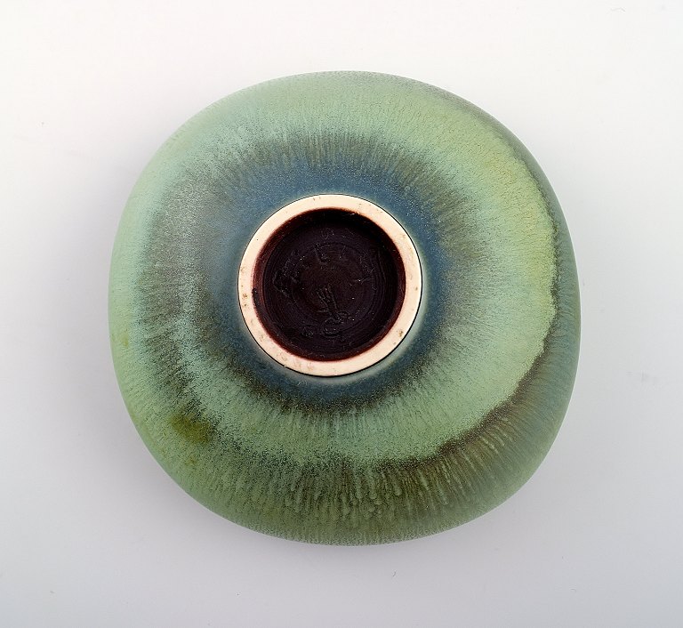 Berndt Friberg (1899-1981), Gustavsberg Studio Hand Ceramic Bowl, beautiful glaze in shades of blue and green. Stamped. Measures: 13 x 5,5 cm. In perfect condition.