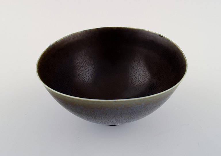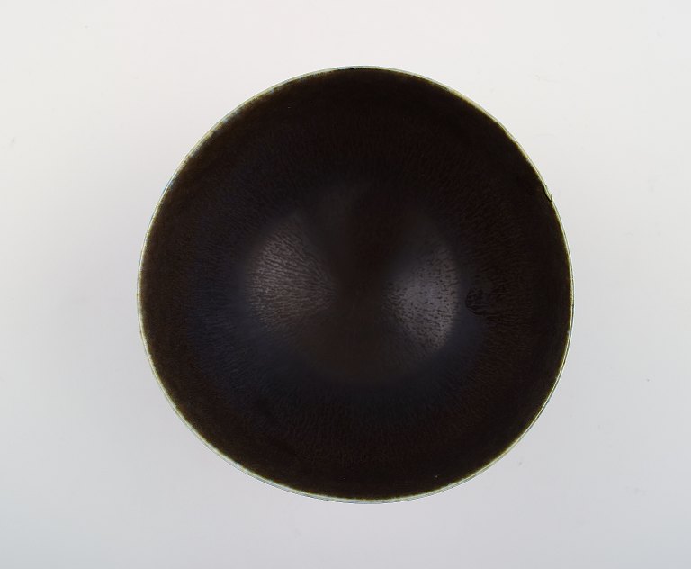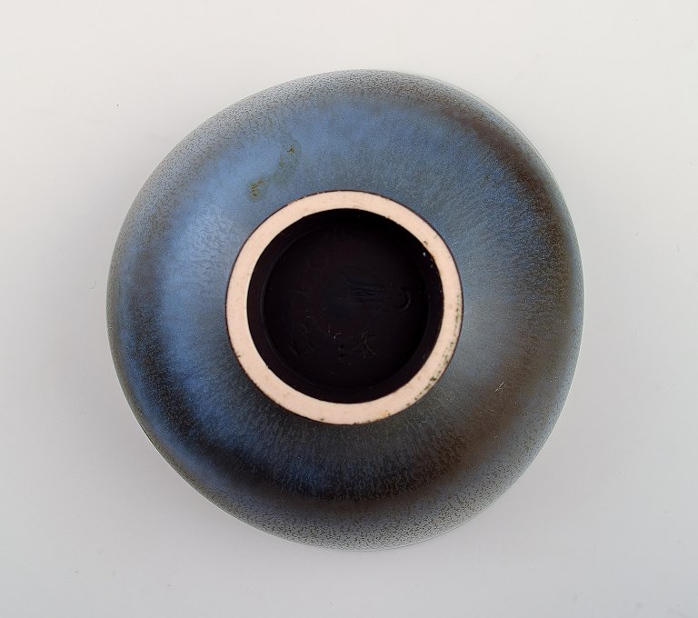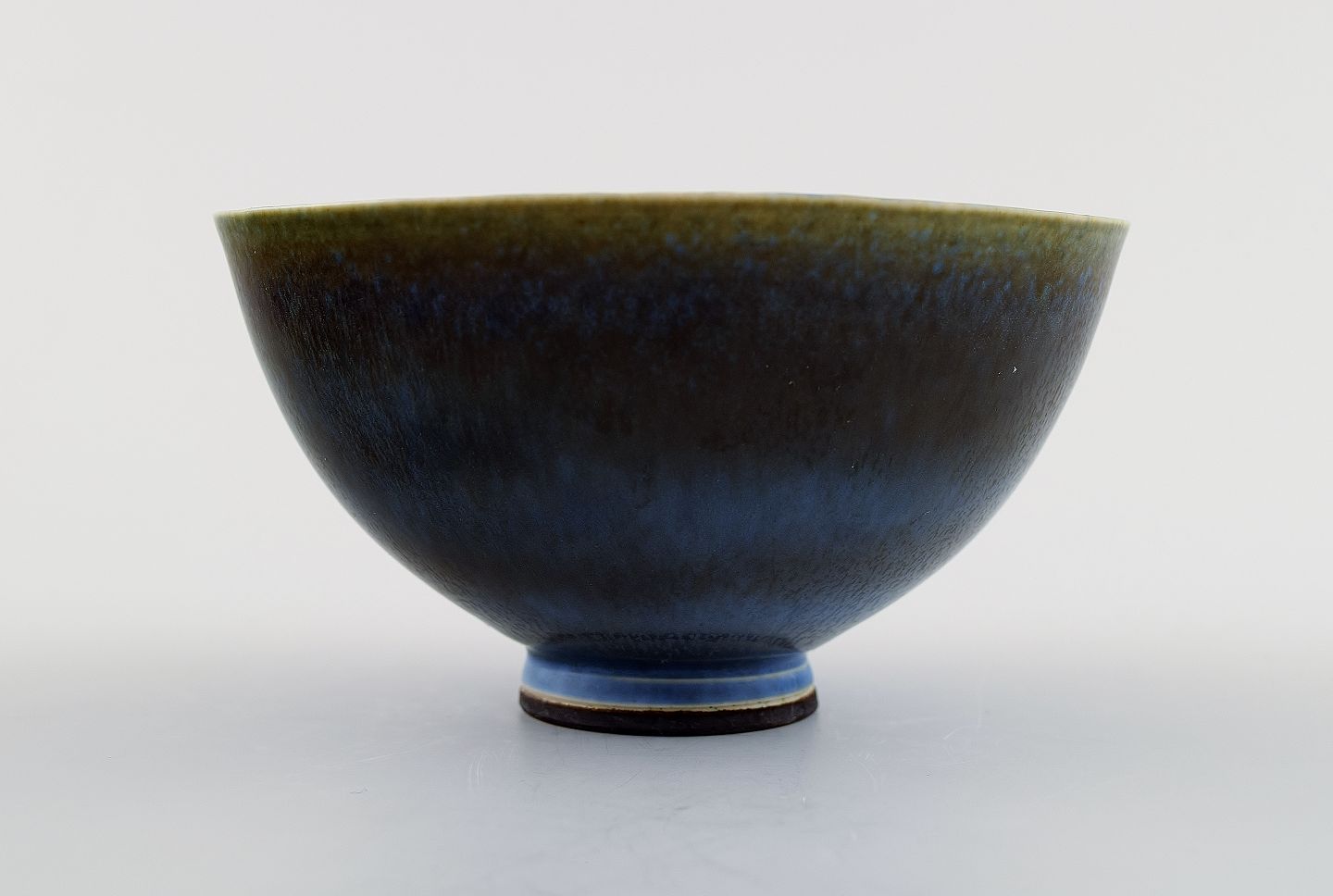 Berndt Friberg (1899-1981), Gustavsberg Studio Hand Ceramic Bowl, beautiful glaze in shades of blue and green. Stamped Ä = 1957. Measures: 11 x 6,5 cm. In perfect condition.