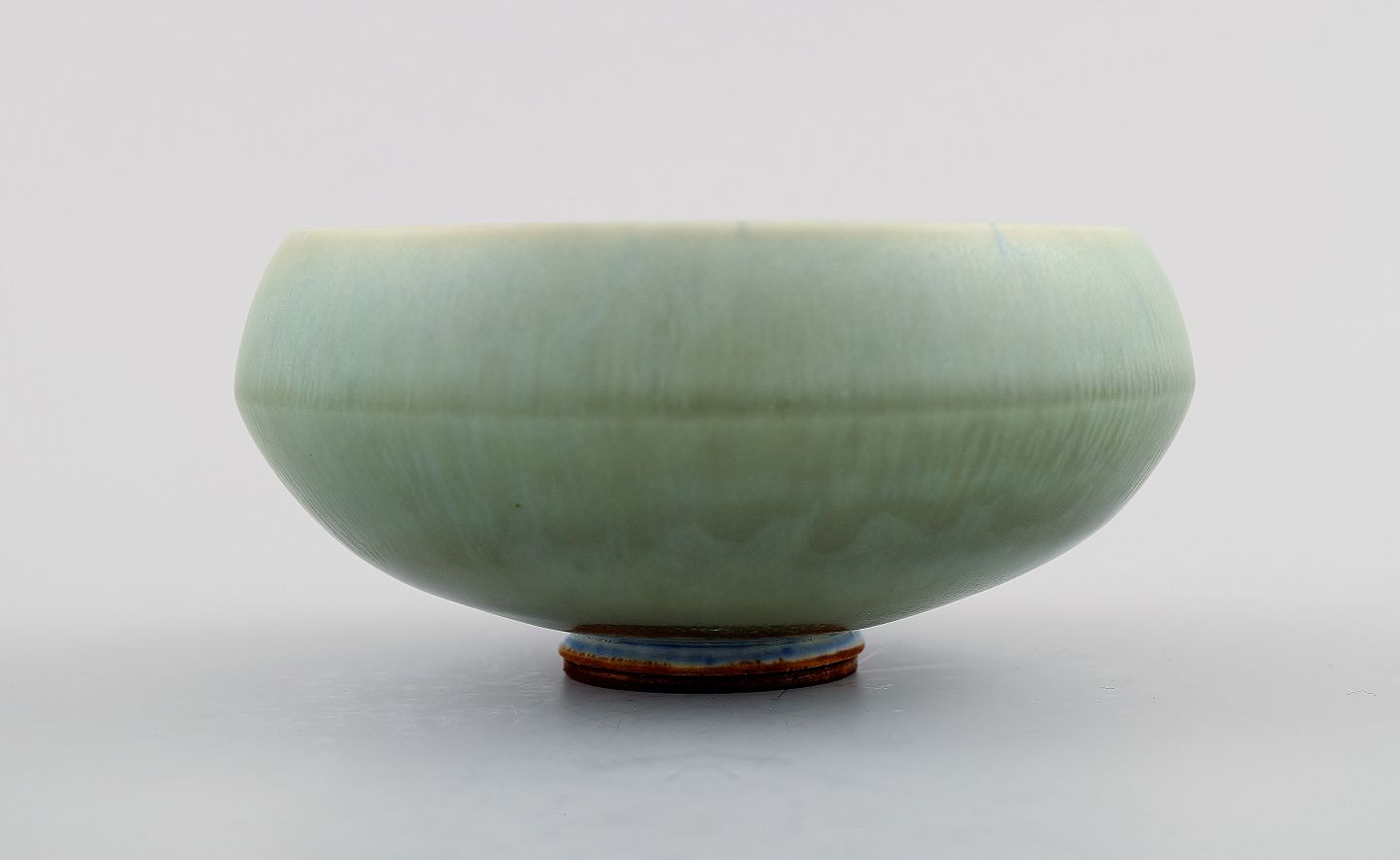 Berndt Friberg (1899-1981), Gustavsberg Studiohand Keramikskål, smuk glasur i lysegrønne nuancer. Måler: 12 x 7 cm. I perfekt stand.