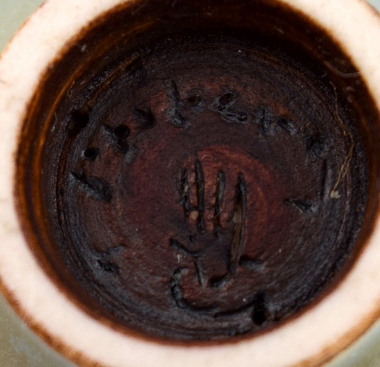 Berndt Friberg (1899-1981), Gustavsberg Studio. Miniature bowl, glaze in blue and green shades. Measures: 3.5 x 2.5 cm. In perfect condition.